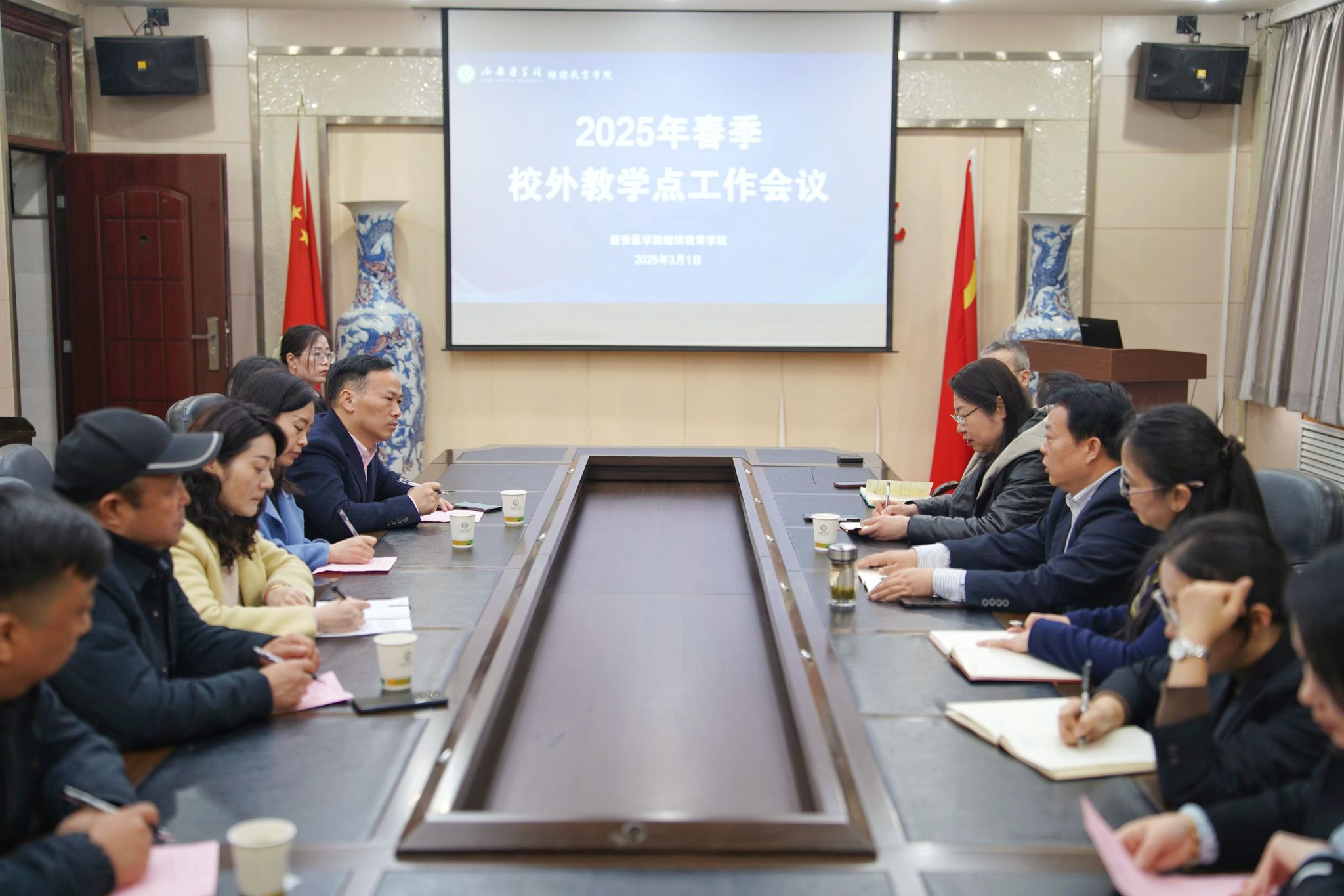 3月1日上午,PP电子游戏网站召开了2025年春季学期校外教学点工作会议,学院院长崔军海、副院长李新华和省高教系统职业中等专业学校校长陈禹、市鄠邑区卫生培训中心主任高春风以及学院和校外教学点有关人员参加了会议。由学院副院长李新华主持。