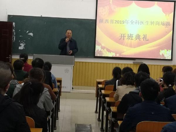 2019年4月2日上午,PP电子游戏网站在高新校区教学楼第二教室举行2019年全科医生转岗培训开班典礼,参加本次培训的学员共200人,其中陕西省卫健委组织的120人,西安市卫健局组织的80人。